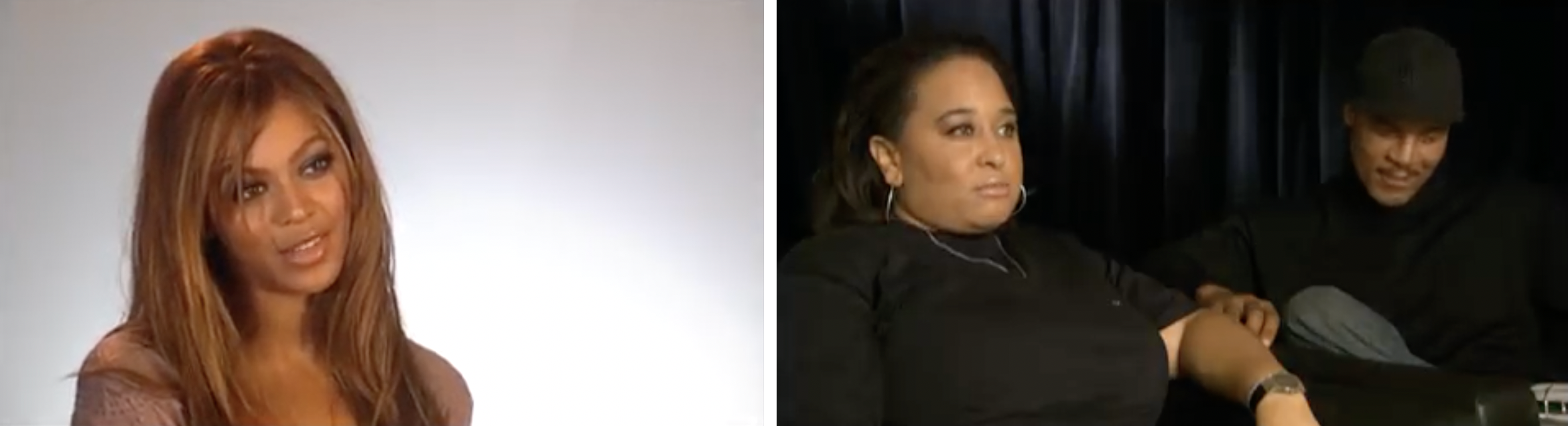 The star also participated in a short documentary about her album called The Making of Dangerously in Love (2003), for which I’ve never been able to find official credits. Over 15 minutes, she elaborates on certain songs through two different talking heads that we jump freely between. There’s split-screen so that this footage can sit directly alongside that of her in the studio—a sign that the short may have been made to send around to the big video networks, since this was a common quirk of shows like MTV’s Making the Video and BET’s Access Granted.