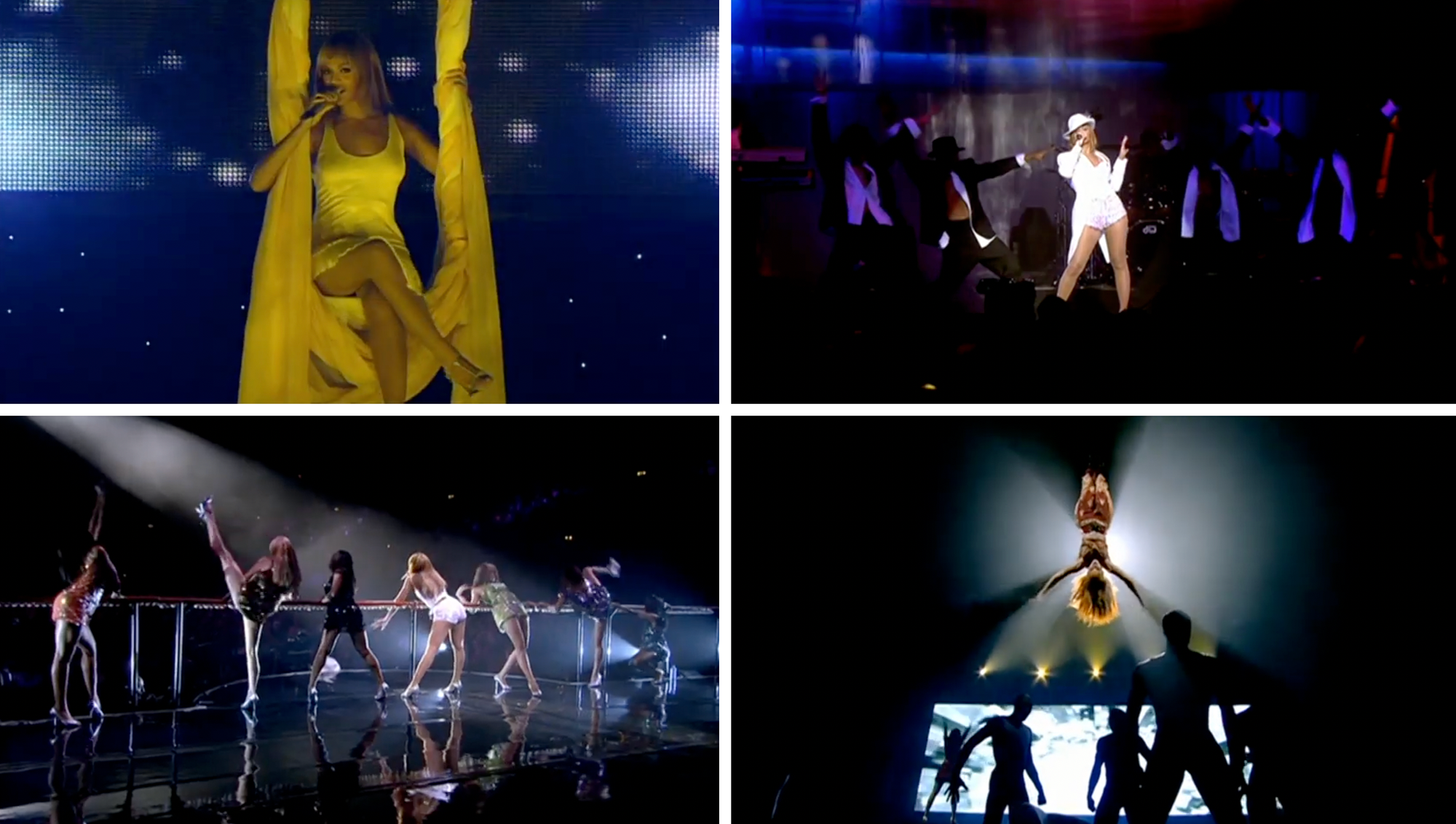 The previous fall, Beyoncé had taken Dangerously in Love on the Europe-only Dangerously in Love Tour, her first as a solo headliner. The tour funnelled the album through a decidedly old-school showbiz lens—think lots of sequins and feathers, Michael Jackson-esque references to Bob Fosse, and Beyoncé entering the stage more than once from the ceiling. Included on the setlist were several songs associated with her film appearances thus far, including “Work It Out,” “Fever,” and “Summertime.”