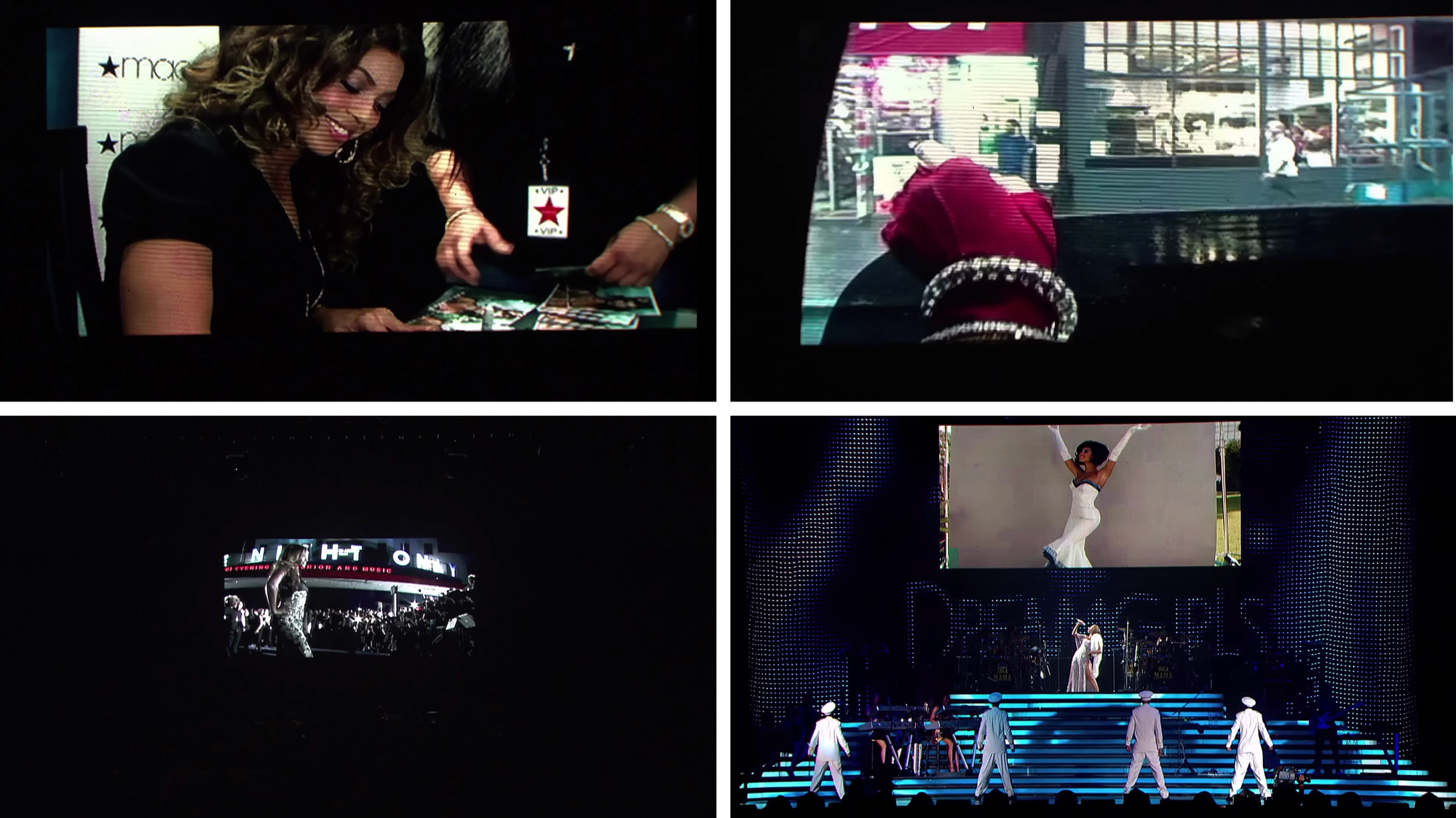 “There were certain moments where I was so exhausted I could barely speak,” she tells the camera of her video album. “And I didn’t think about anything but videos, and I tried to be as focused as I could, and I tried to just grind it out.” The short argues, if implicitly, that the star’s life could be deceptively unglamorous—the same idea she’d stressed while shooting Dreamgirls to deflect from her life’s resemblance to Deena’s.
