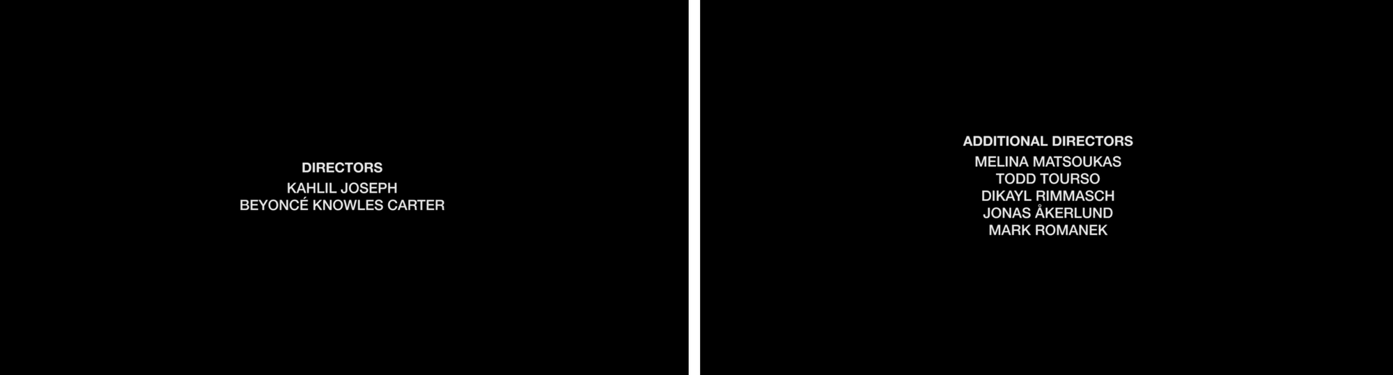 Lemonade (2016) — directed by Beyoncé, Kahlil Joseph, Dikayl Rimmasch, Todd Tourso, Jonas Åkerlund, Melina Matsoukas, Mark Romanek