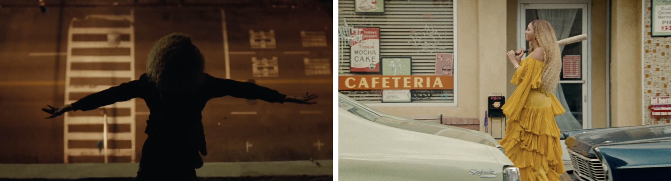 In a later Rimmasch interlude, Beyoncé covers “Bang Bang”—not the original Cher version, but the better-known Nancy Sinatra redo that opens Kill Bill: Volume 1 (2003)—while her husband looks on through a cloud of smoke. (Sinatra’s voice eventually issues from the star’s mouth instead, explicitly tying the two blondes together for just the first time.) Elsewhere is a grislier nod to Kill Bill, plus a proper callback to Arthur Penn’s Bonnie & Clyde (1967), but we’ll get to those in a moment.
