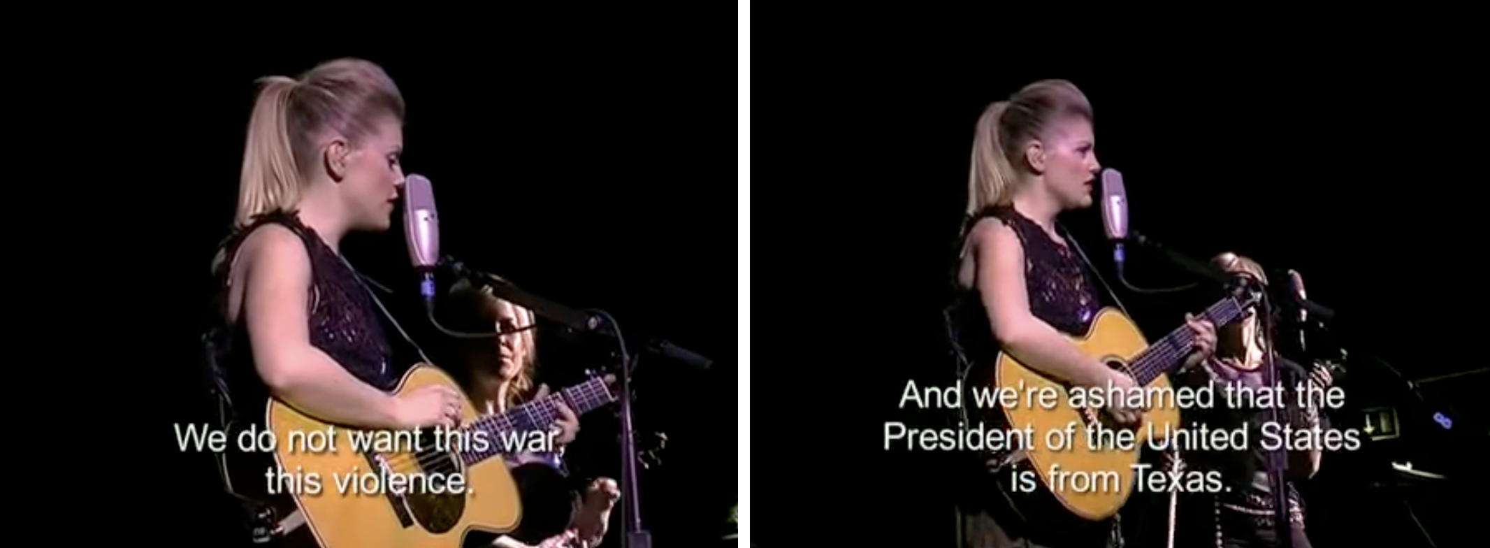 The Chicks had famously fallen out with the establishment in early 2003, when Maines told a crowd in England—a week before America began its invasion of Iraq—that they were not only against the impending war but ashamed George W. Bush was from Texas. “Becoming the subject of national scorn practically overnight,” I’ve written elsewhere, “country radio stations ceased playing their music and former fans destroyed CDs in the street.” Though the group weren’t the only Bush-critical celebrities at the time, to say nothing of how they’d eventually get their comeuppance, American country listeners overwhelmingly supported the then-president.