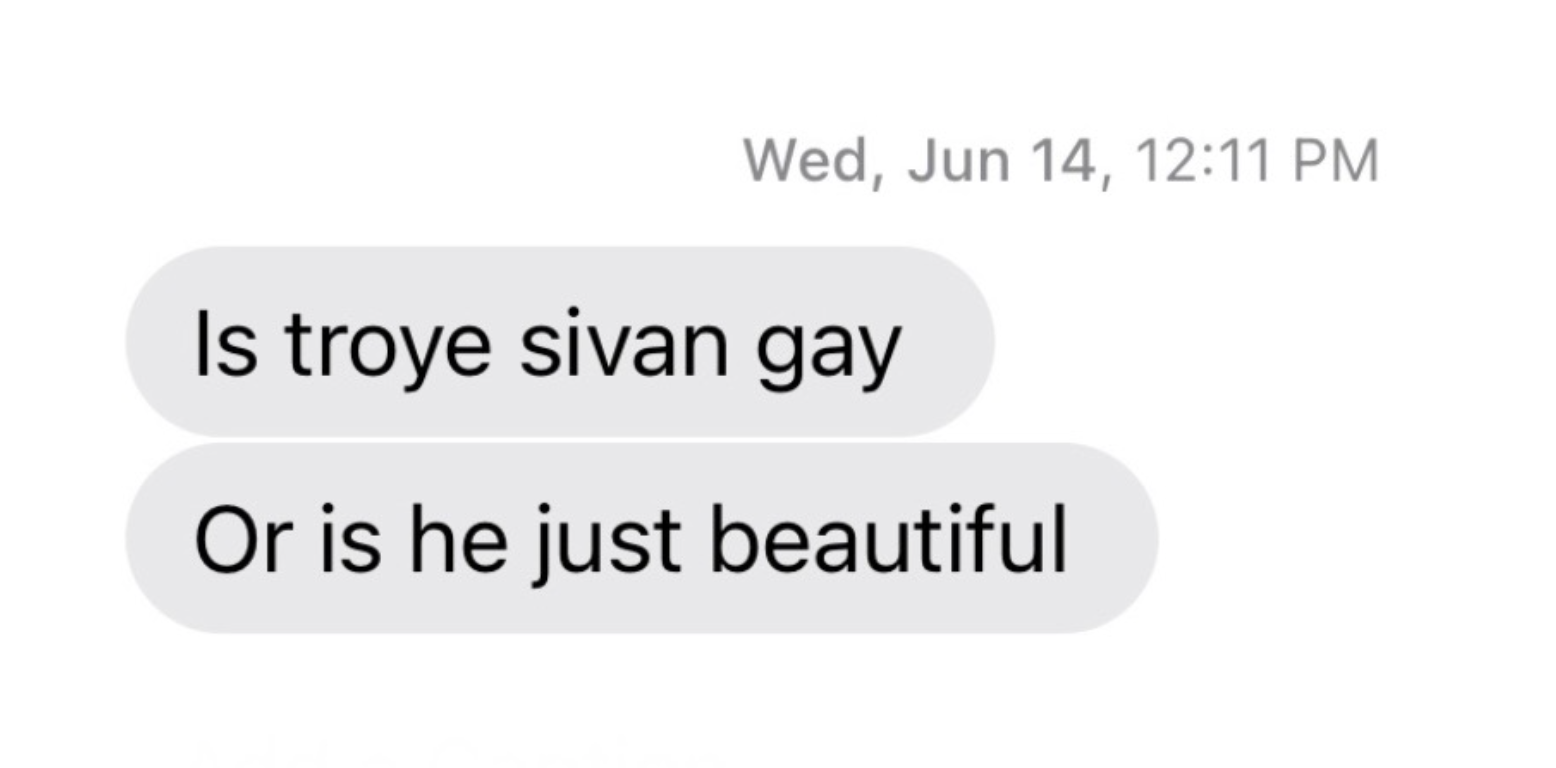 Troye actually appears a number of times among my blues and greens; a non-2023 green from him is “Angel Baby” (2021). And a special shout-out to the person who tragically sent me these texts a little while back: