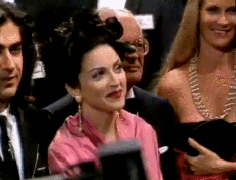 “Vogue” was filmed during what seem to have been the final weeks of Madonna and Fincher’s romantic relationship proper, but that was perhaps unbeknownst to either party. As with “Express Yourself,” Madonna is styled, lit, and shot to be not only looked at but lusted after. (Fincher knew her best angles, after all.) Nipples aside, we’re talking silks, furs, diamonds, corsetry, a cone bra, more nudity, and even another pantsuit. Equally compelling is B-roll footage from the video shoot that’s since made its way online. Madonna is at times suggestive, silly, and perhaps a little distracted. It’s audio-less, but you can see that she at one point flirtatiously apologizes for screwing up a take. It all reads quite differently once you remember that she was having a relationship with the man behind the camera. By the time that “Vogue” premiered in the last few days of March, however, something had happened between them.