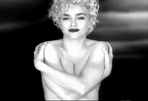 “Vogue” was a song not from Like a Prayer but from I’m Breathless (1990), a companion album that Madonna made for Warren Beatty’s Dick Tracy (1990), which she was starring in. Fincher was given 48 hours to put the video together, filming it over a weekend in February. While it’s full of references to Art Deco and circa-1940s fashion photography, it’s perhaps most indebted to Isaac Julien’s Looking for Langston (1989), a hallmark of New Queer Cinema. (It also, quite notably, recreates photos of a number of Old Hollywood stars, including Dietrich as she appears in von Sternberg’s Shanghai Express [1932].) As with “Oh Father,” MTV objected to one shot—this time the early hero shot of Madonna, in which she dons a sheer top and you can very much see her nipples. As with the last one, however, it stayed put in the end.
